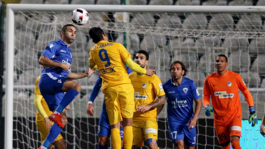 Χωρίς να υπάρξουν μεγάλες φάσεις στα πρώτα λεπτά, ο ΑΠΟΕΛ έφθασε μία ανάσα από το γκολ στο 20’, όταν μετά από μπαλιά του Βάντερ, ο Σωτηρίου έβαλε την προβολή όμως η μπάλα δεν κύλησε προς τα δίχτυα αλλά στο δοκάρι της εστίας του Κόπριβετς.