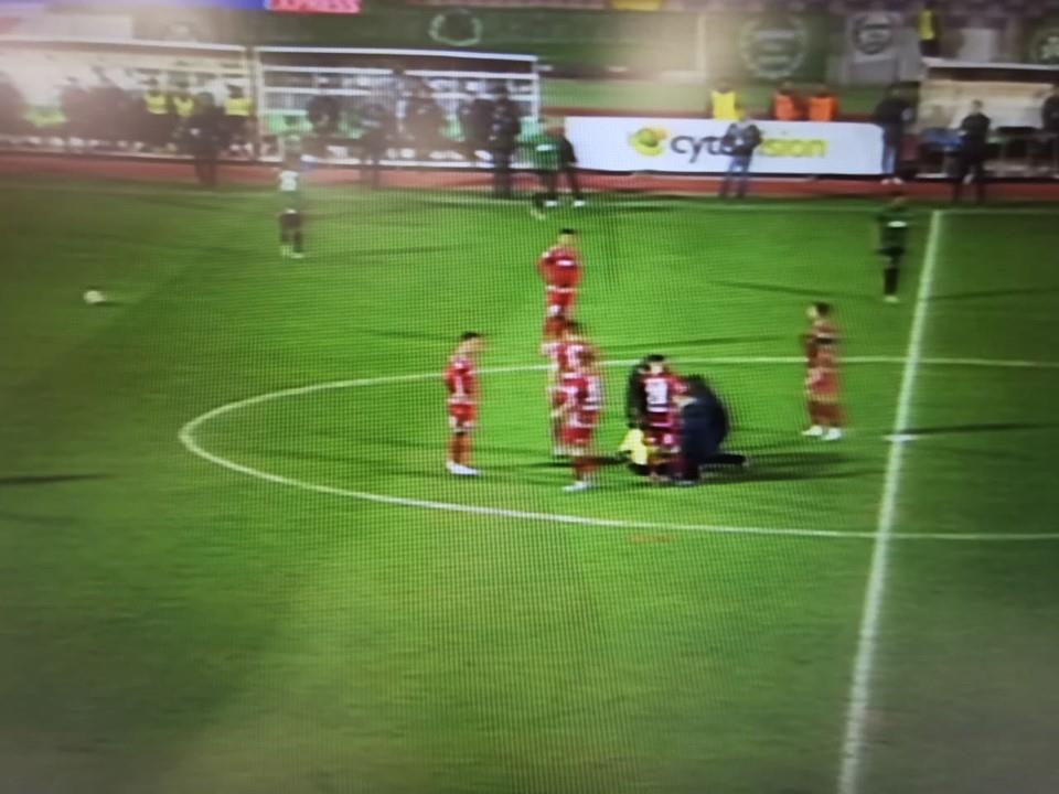 Συγκεκριμένα στο 23' της αναμέτρησης, ο Τράττος, συγκρούστηκε με τον Γκόμεθ στο χώρο του κέντρου με τον Κύπριο ρεφ να πέφτει στο έδαφος και να μένει κάτω για λίγο κάτω.